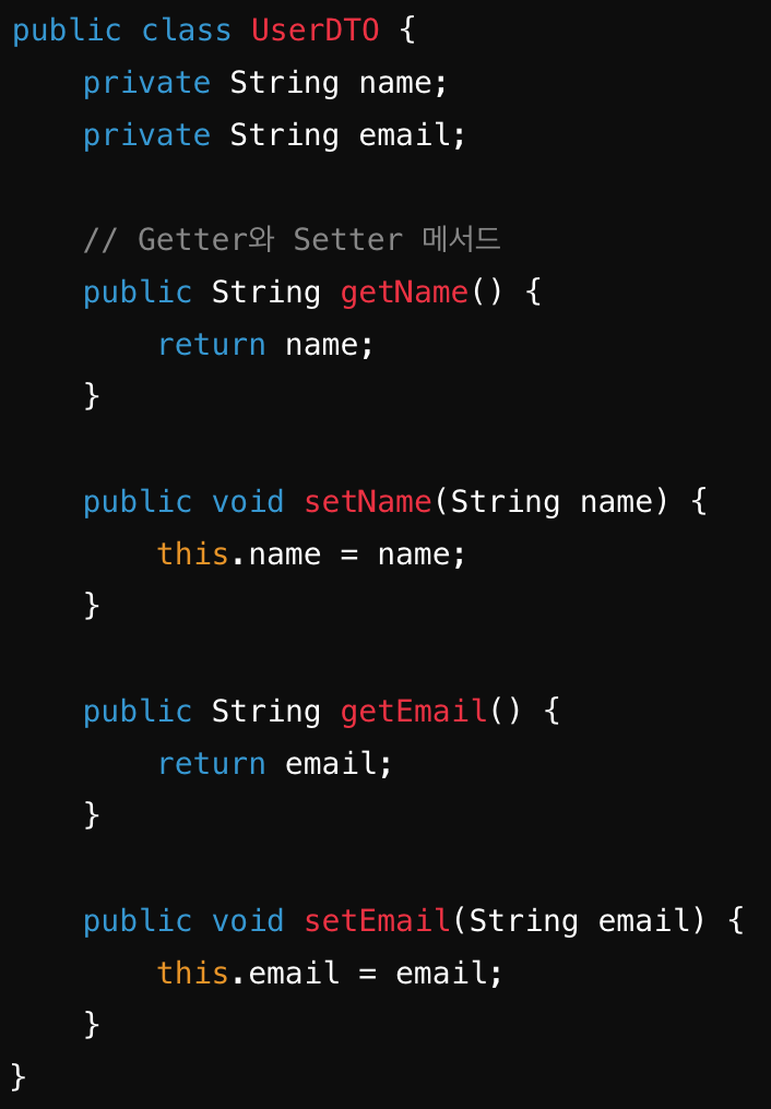 - 역할: 서비스 계층과 프레젠테이션 계층 간에 데이터를 전송하여 데이터의 무결성을 유지하고, 데이터 전송을 간편하게 만듦.