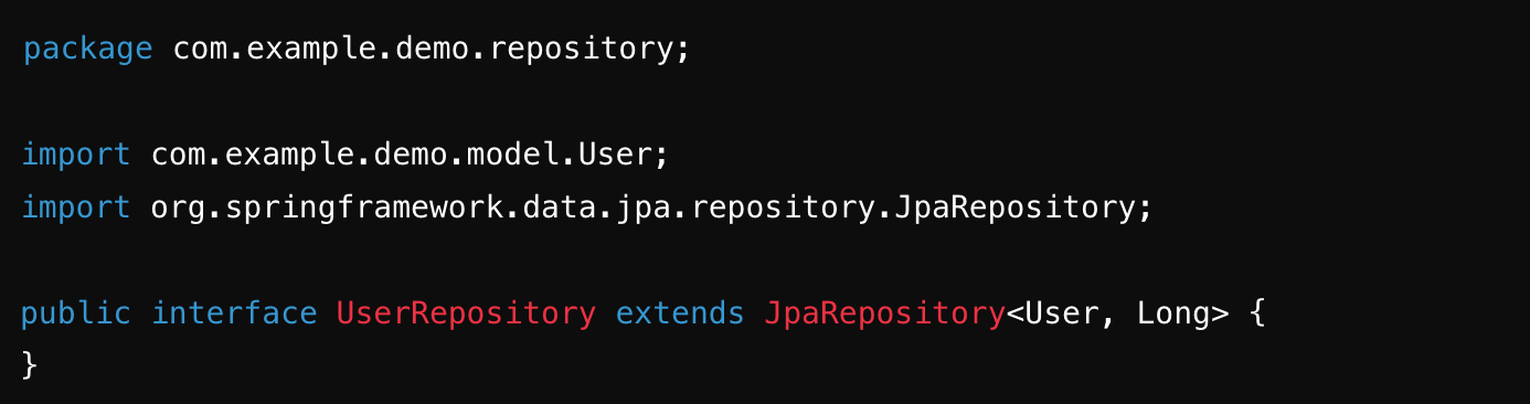 src/main/java/com/example/demo/repository/UserRepository.java 파일을 생성합니다.