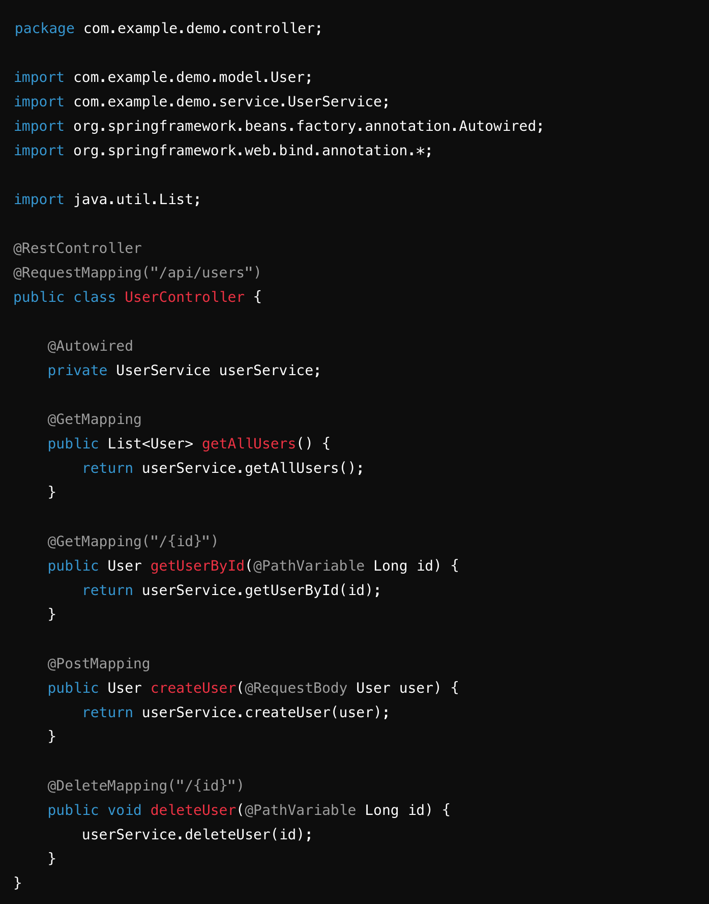 src/main/java/com/example/demo/controller/UserController.java 파일을 생성합니다.