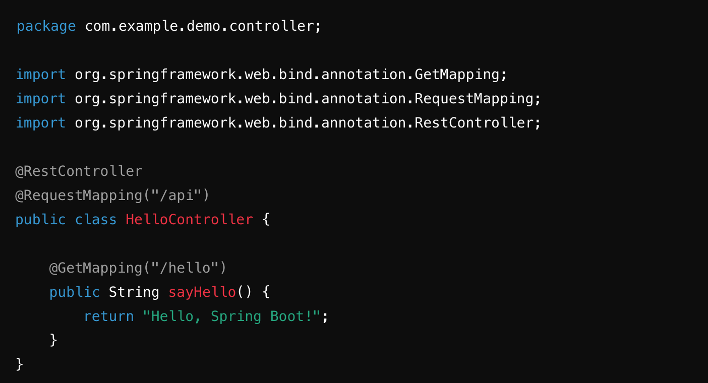 - 컨트롤러 구현: HelloController와 UserController 클래스에서 REST API 엔드포인트 정의.